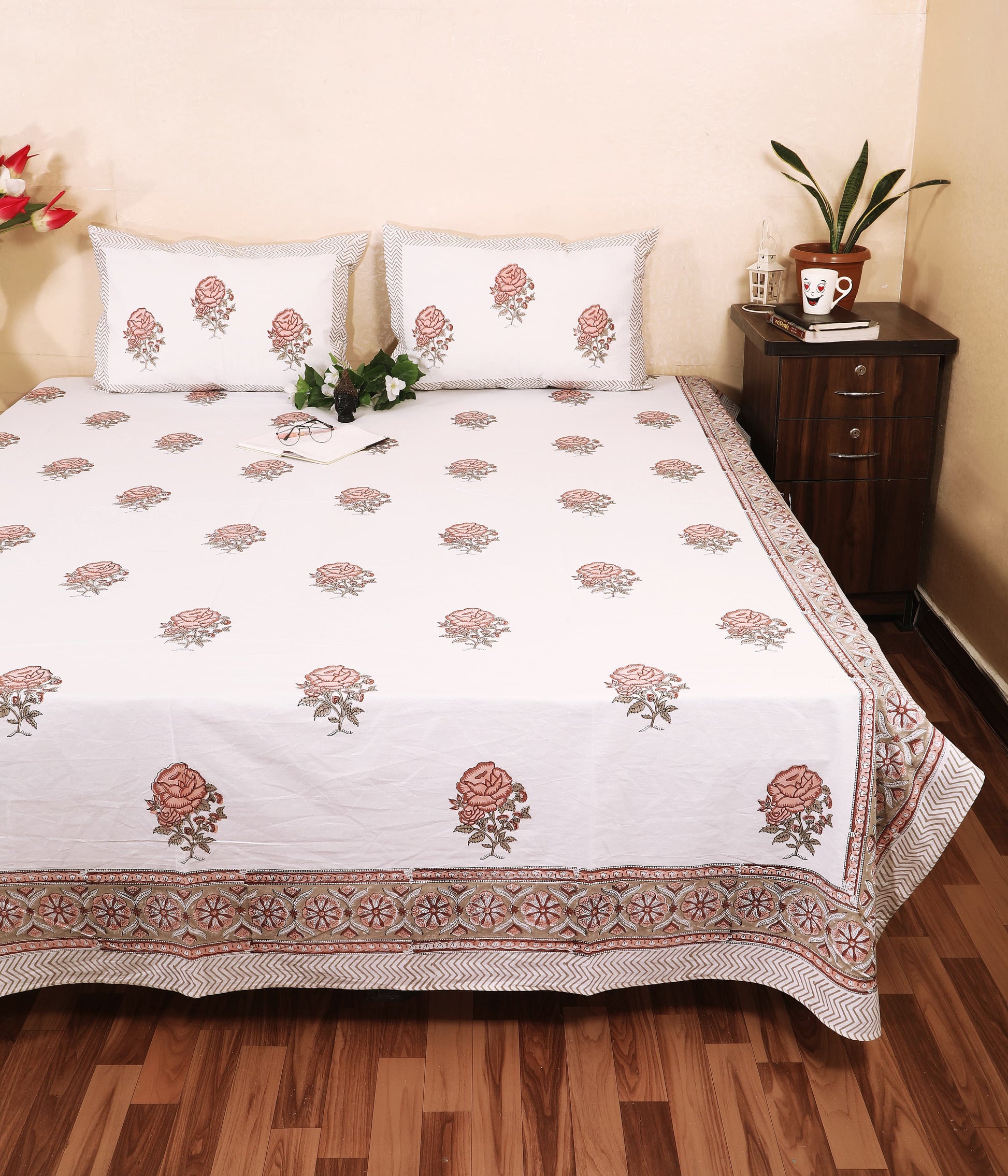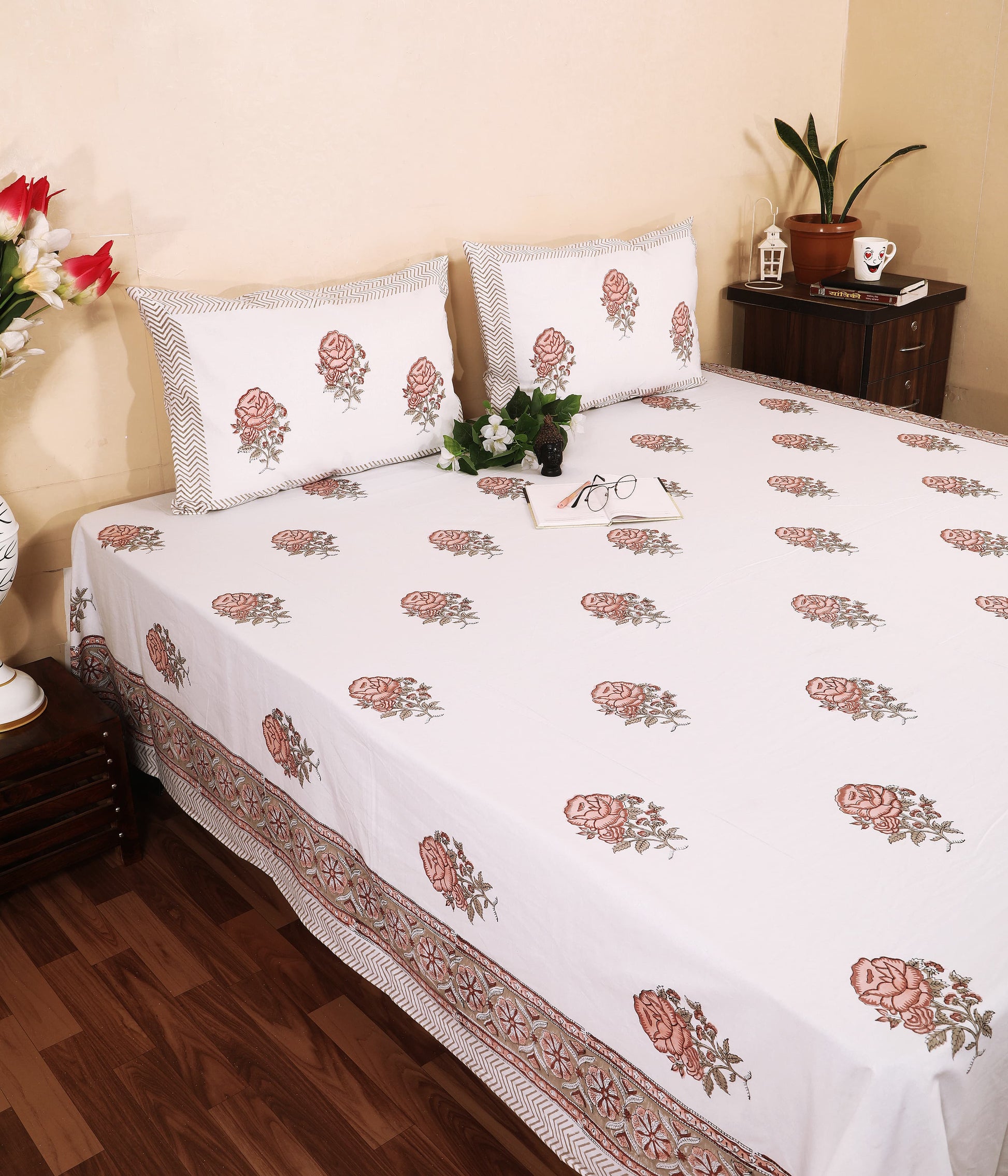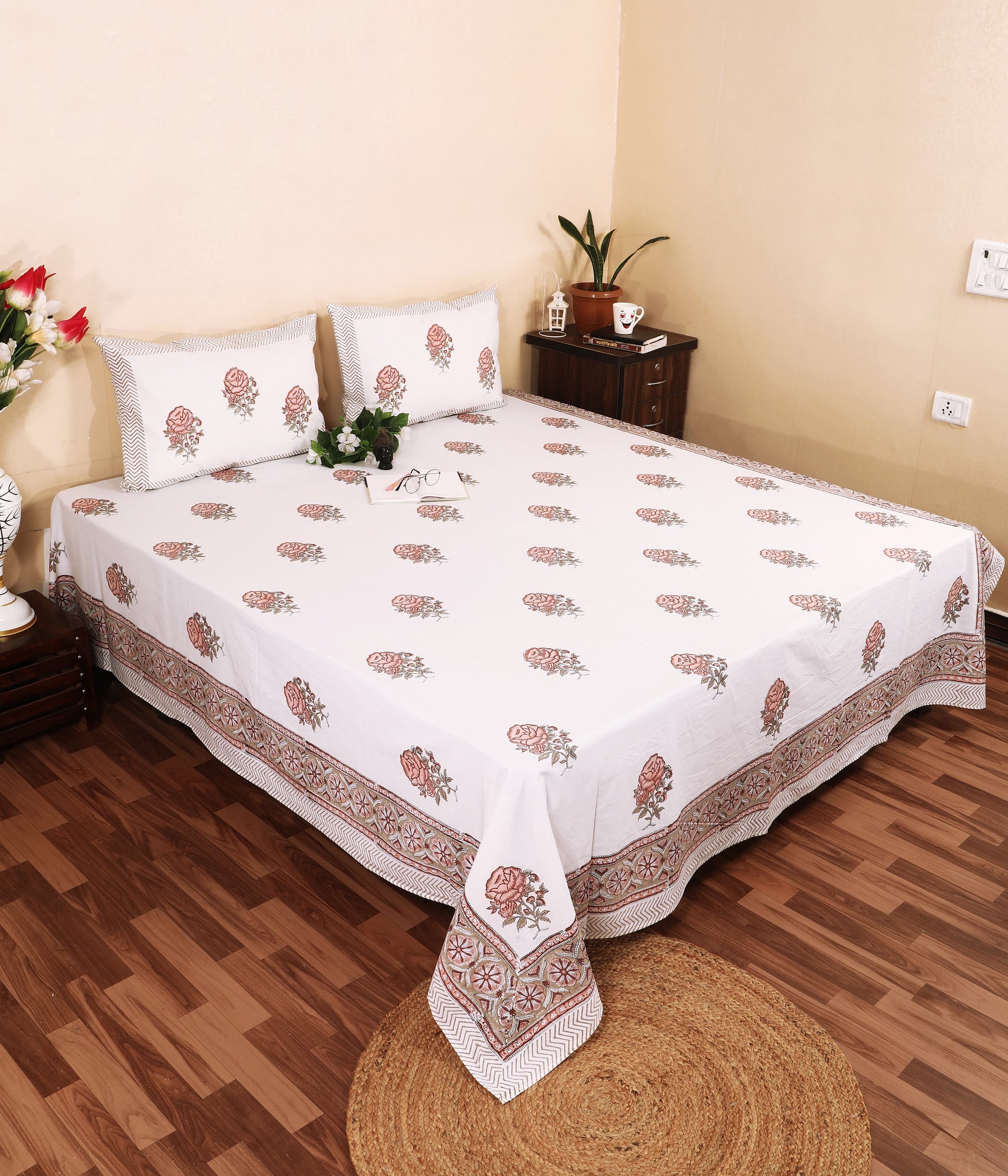 Bold, passionate, and vibrant — the Surkh Bagh / Crimson Bouquet Bedsheet from The Highmour Bloomline captures the timeless beauty of red blossoms in full bloom. Surkh Bagh, meaning garden of red, celebrates heritage floral artistry, while Crimson Bouquet gives it a modern identity with its bold tones and contemporary appeal. Handcrafted through Jaipur’s traditional hand block printing, this bedsheet is a perfect example of heritage meeting modern luxury.
