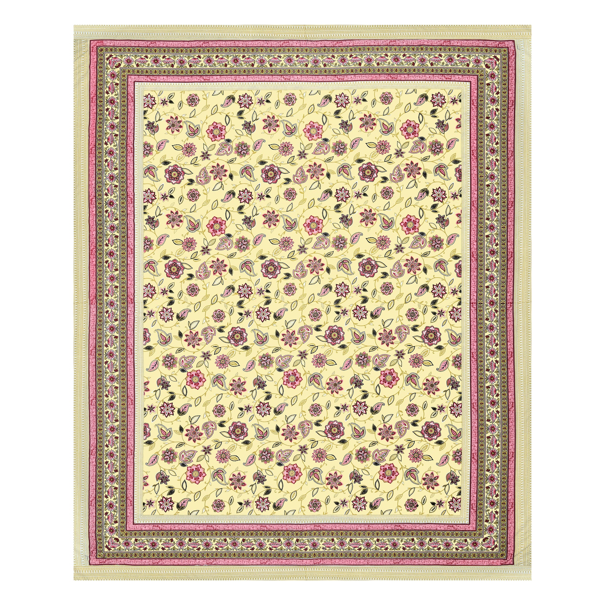 The Floral Reverie Bedsheet is a poetic expression of Indian artistry — where delicate vines, blooming florals, and intricate borders come together in perfect harmony. Inspired by garden frescoes and Mughal textiles, this handcrafted piece celebrates nature’s gentle rhythm through soft color palettes and detailed craftsmanship.