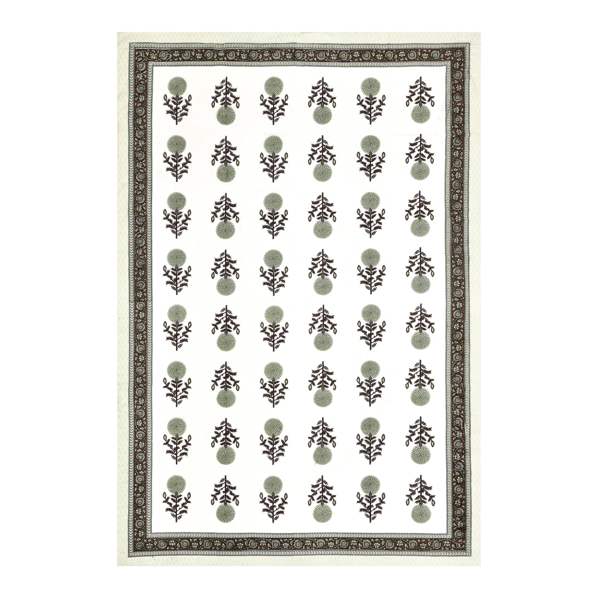 The Ivory Grove Bedsheet embodies the quiet charm of handcrafted living — where simplicity meets detail. Printed in Jaipur on soft, breathable cotton, its floral motifs bloom in harmony across a pure ivory base, framed by delicate block-style borders.