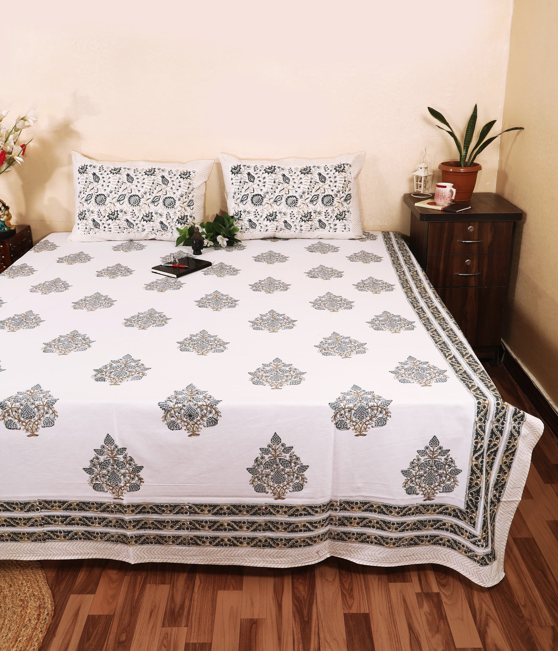 Made with 100% premium cotton, this king-size bedsheet (95x108 inch) offers superior softness, breathability, and comfort across all seasons. Its export-quality craftsmanship ensures durability and rich color retention, even after repeated washes. The set includes two matching pillow covers (18x27 inch), creating a coordinated and graceful bedding ensemble that completes your bedroom look.