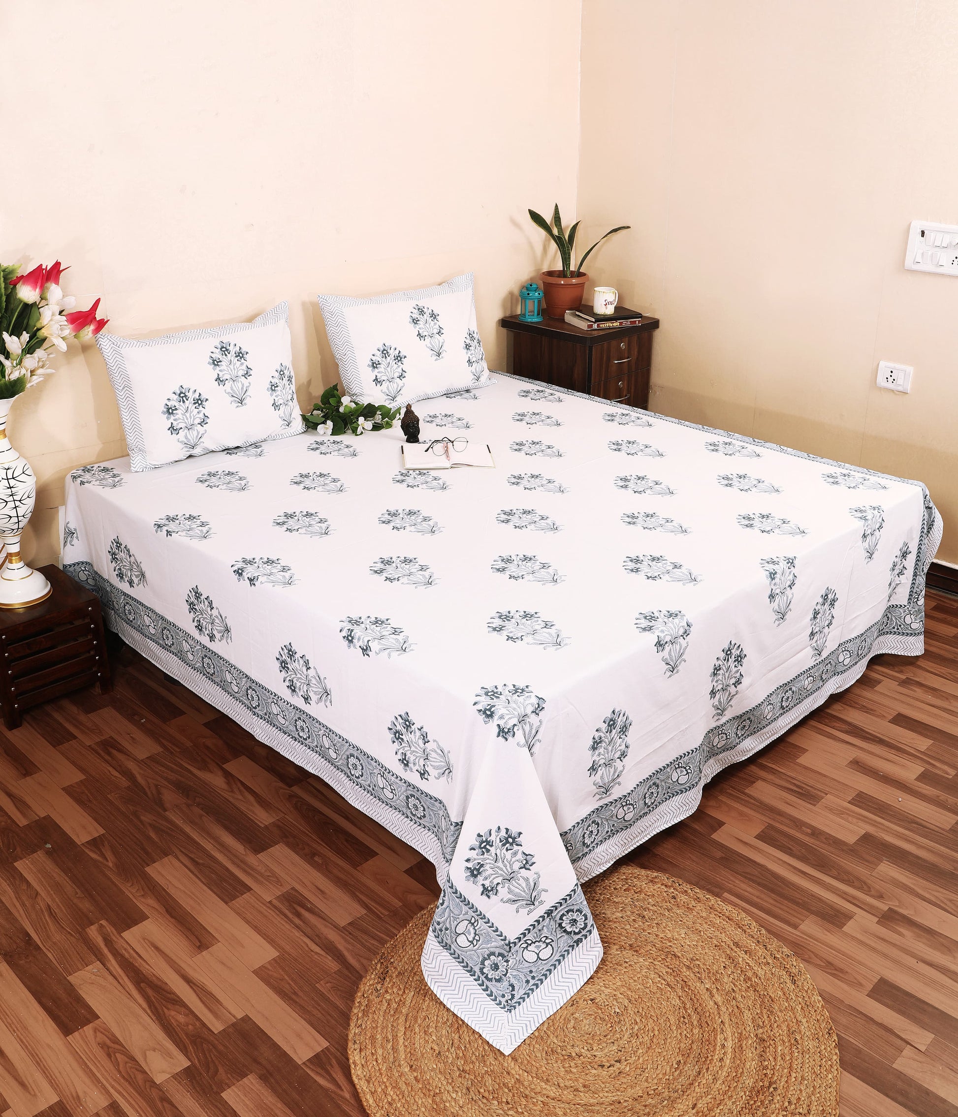 The Neel Kamal / Indigo Bloom Bedsheet adapts beautifully to different settings. At home, it brings calm and sophistication to your bedroom décor. In boutique hotels or AirBnB properties, it creates a serene and memorable guest experience. For gifting purposes, whether for weddings, festive occasions, or corporate hampers, it is a thoughtful choice that combines heritage artistry with modern luxury. Its indigo floral charm makes it suitable for interiors ranging from classic to contemporary.