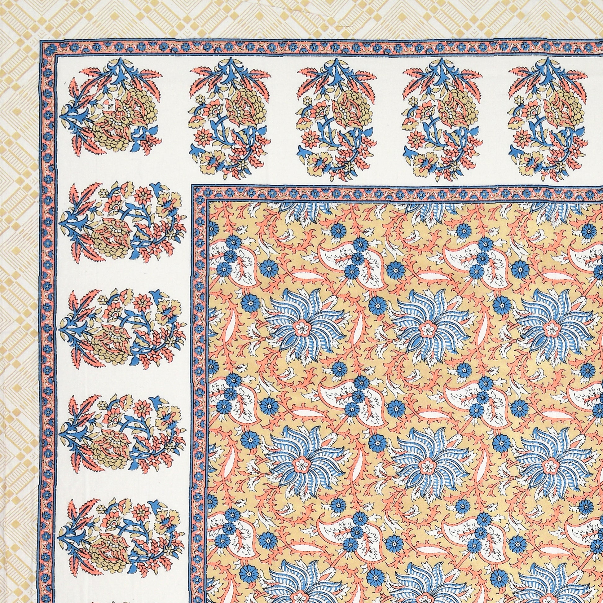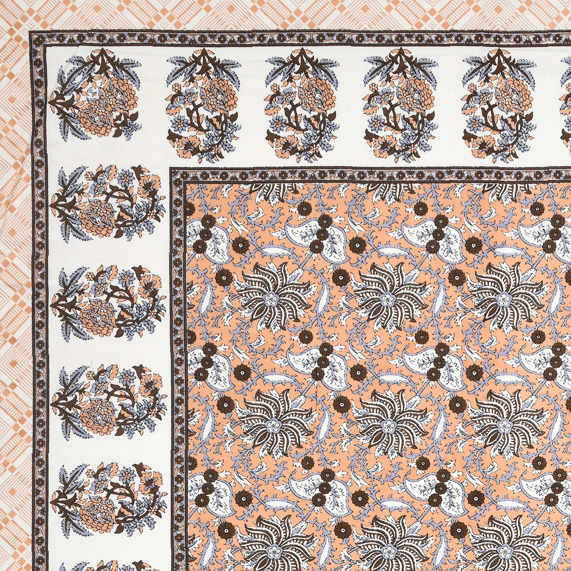 The Regal Bloom Bedsheet draws inspiration from royal gardens — where intricate florals unfold in rhythmic detail. Hand-printed on soft cotton, its lush design balances tradition and artistry, making it an effortless statement for any room.