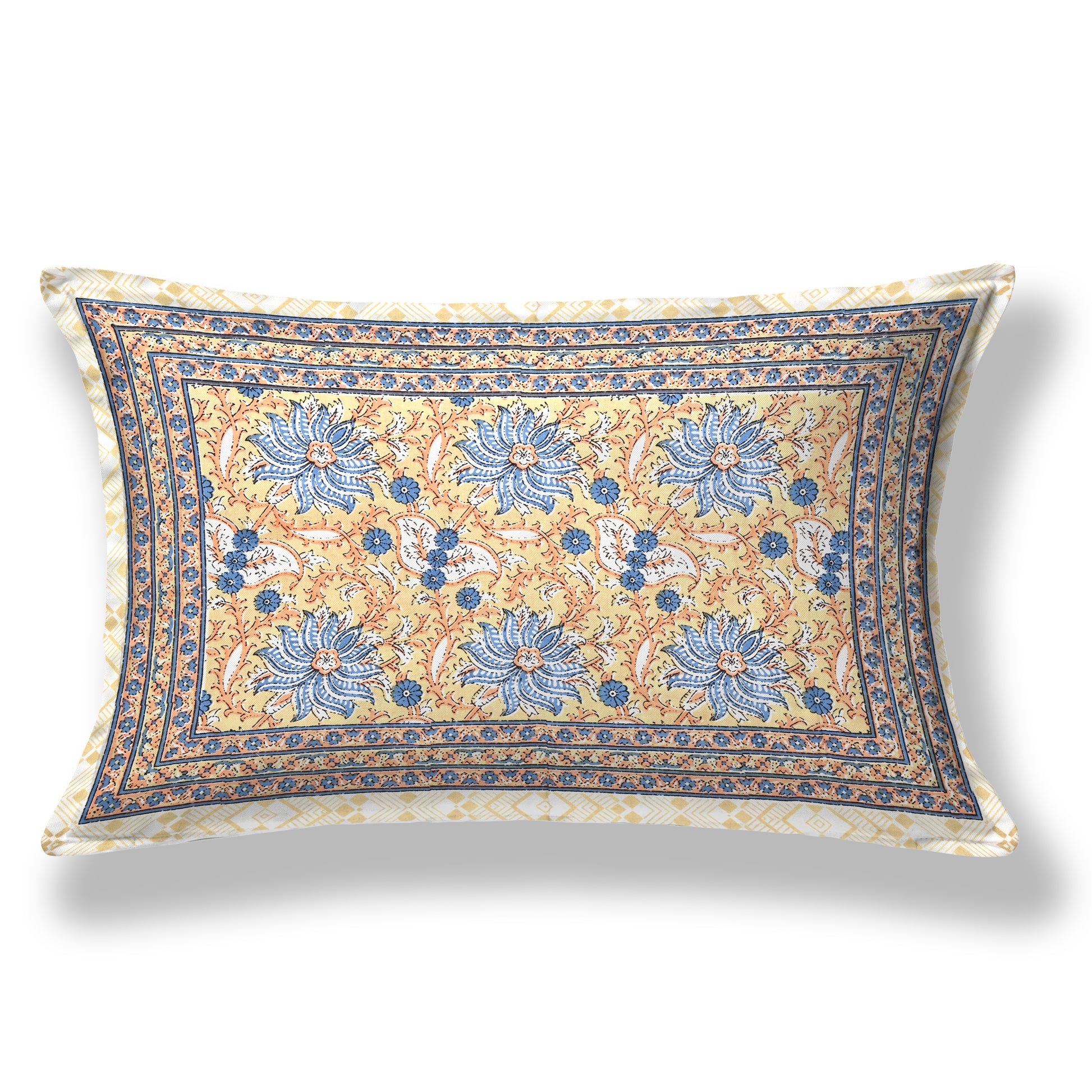 Amber Floral – Mustard yellow with blue blooms and red detailing