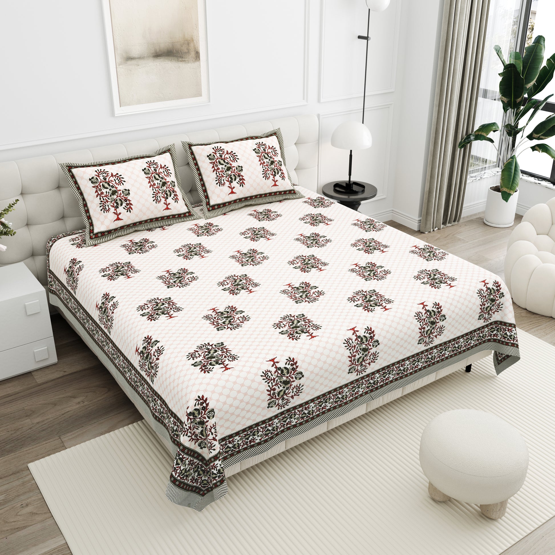 Crafted with care on 100% pure cotton, this piece merges artistic elegance with everyday luxury. Each bedsheet is meticulously hand-printed in Jaipur, preserving the rhythm of craftsmanship that has defined Indian textile heritage for centuries.