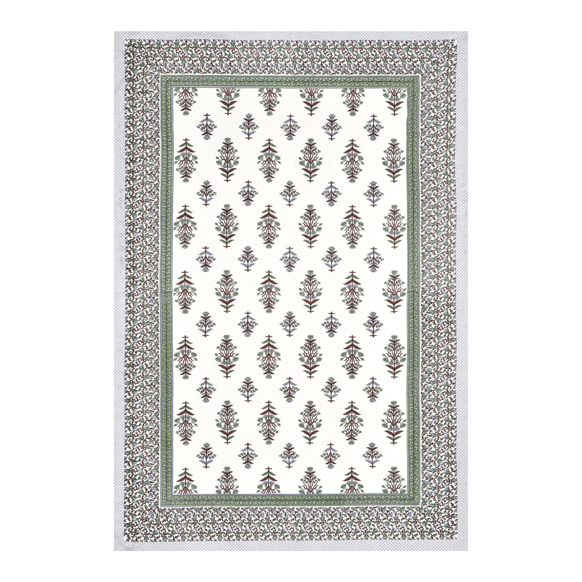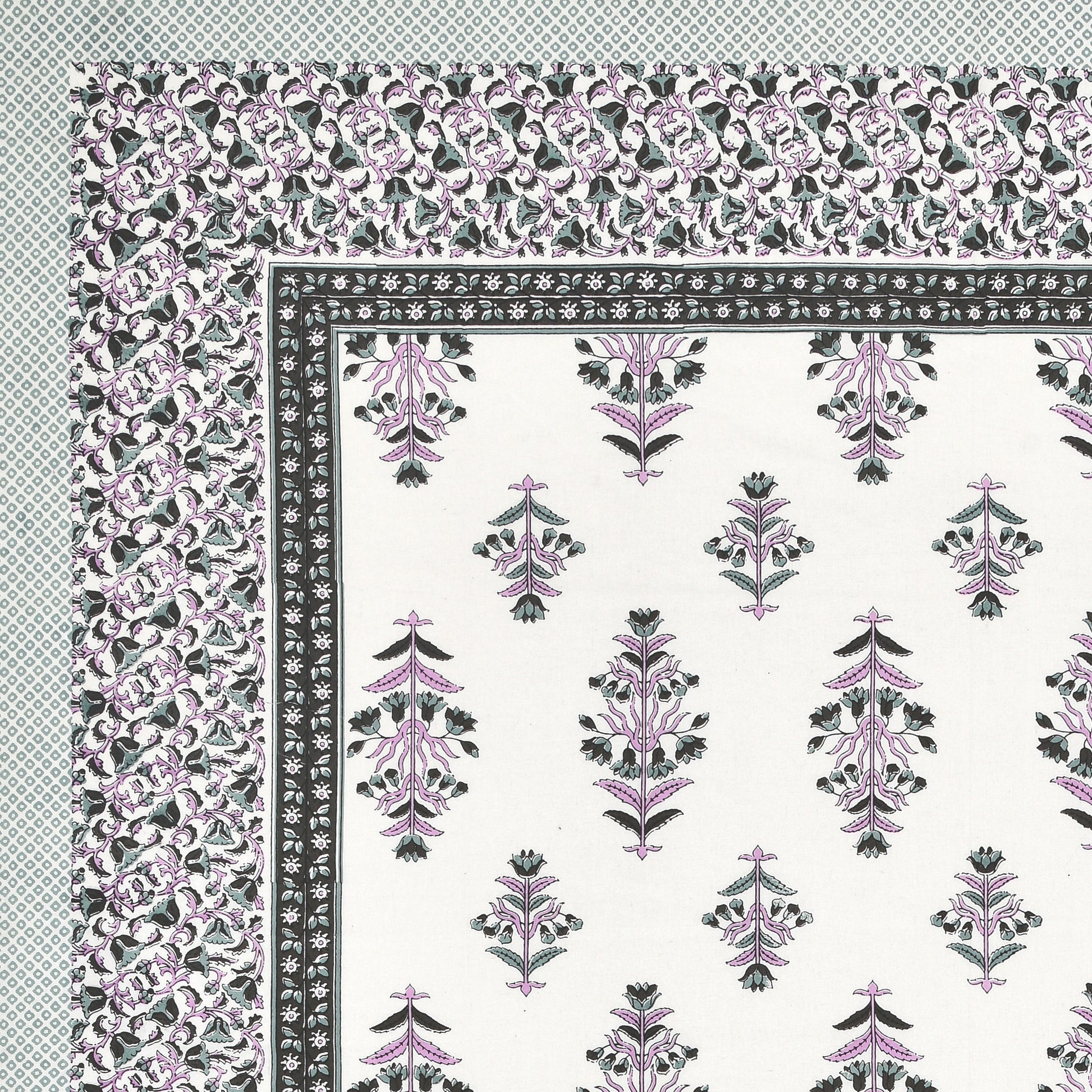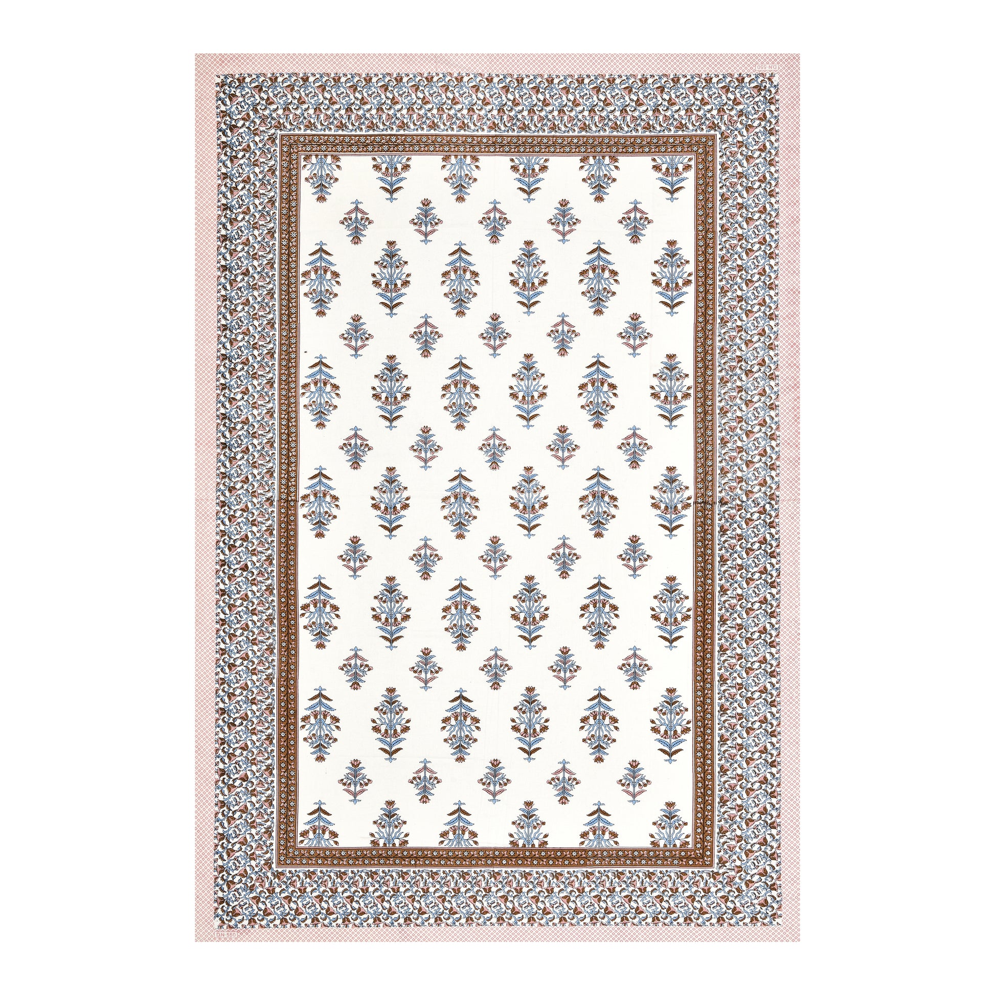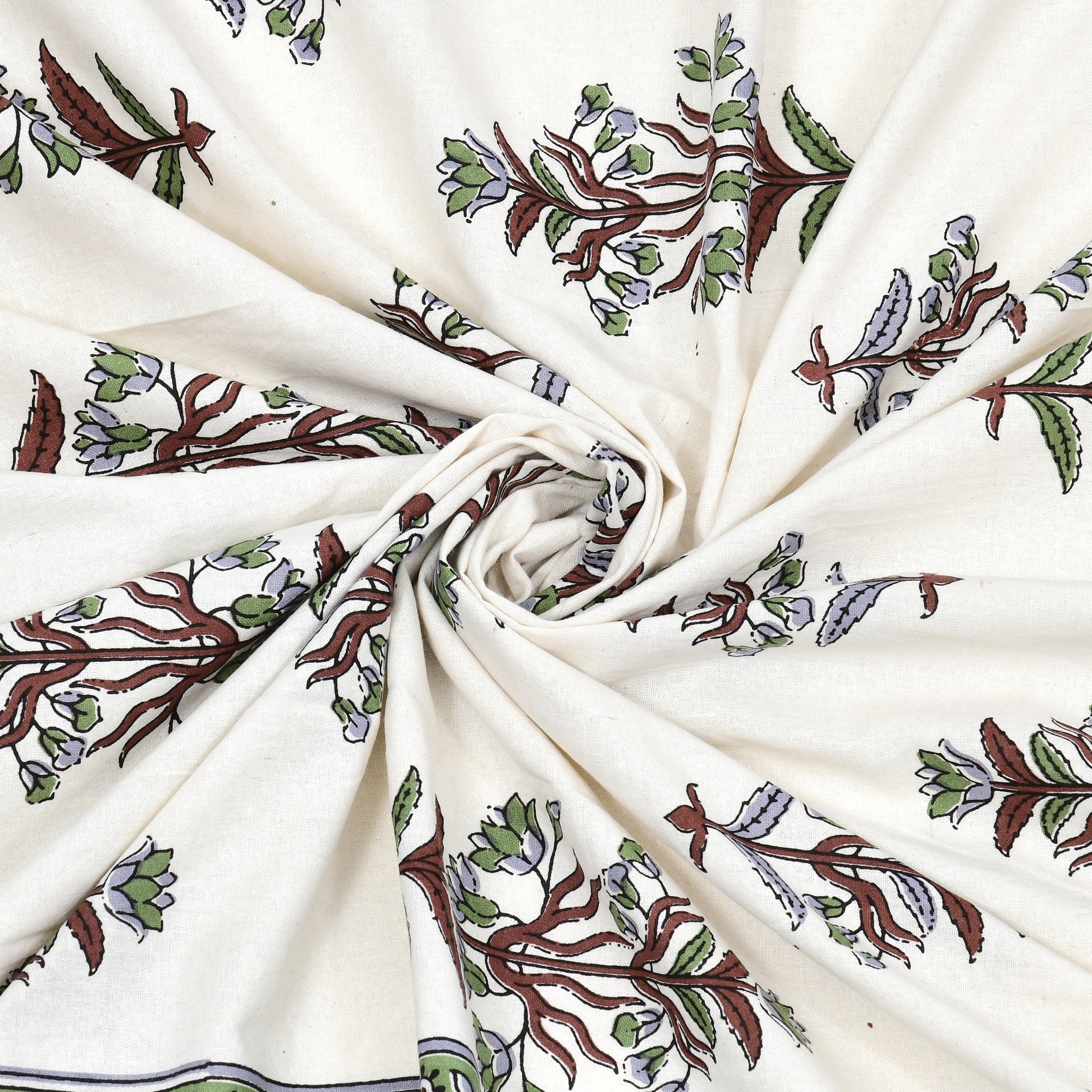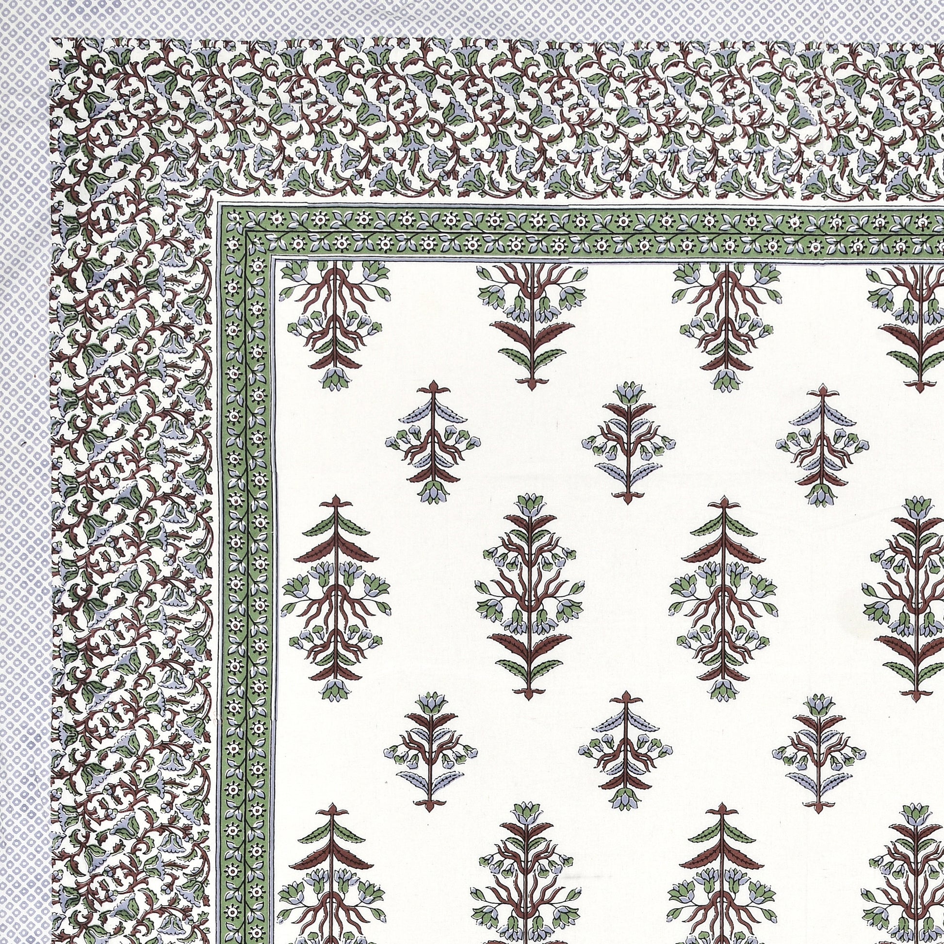 The Verdant Charm Bedsheet captures the serene beauty of blooming fields — handcrafted in Jaipur with precision and poise. Its airy ivory base hosts dainty floral sprigs, framed by intricate patterned borders that lend a touch of timeless Indian artistry.