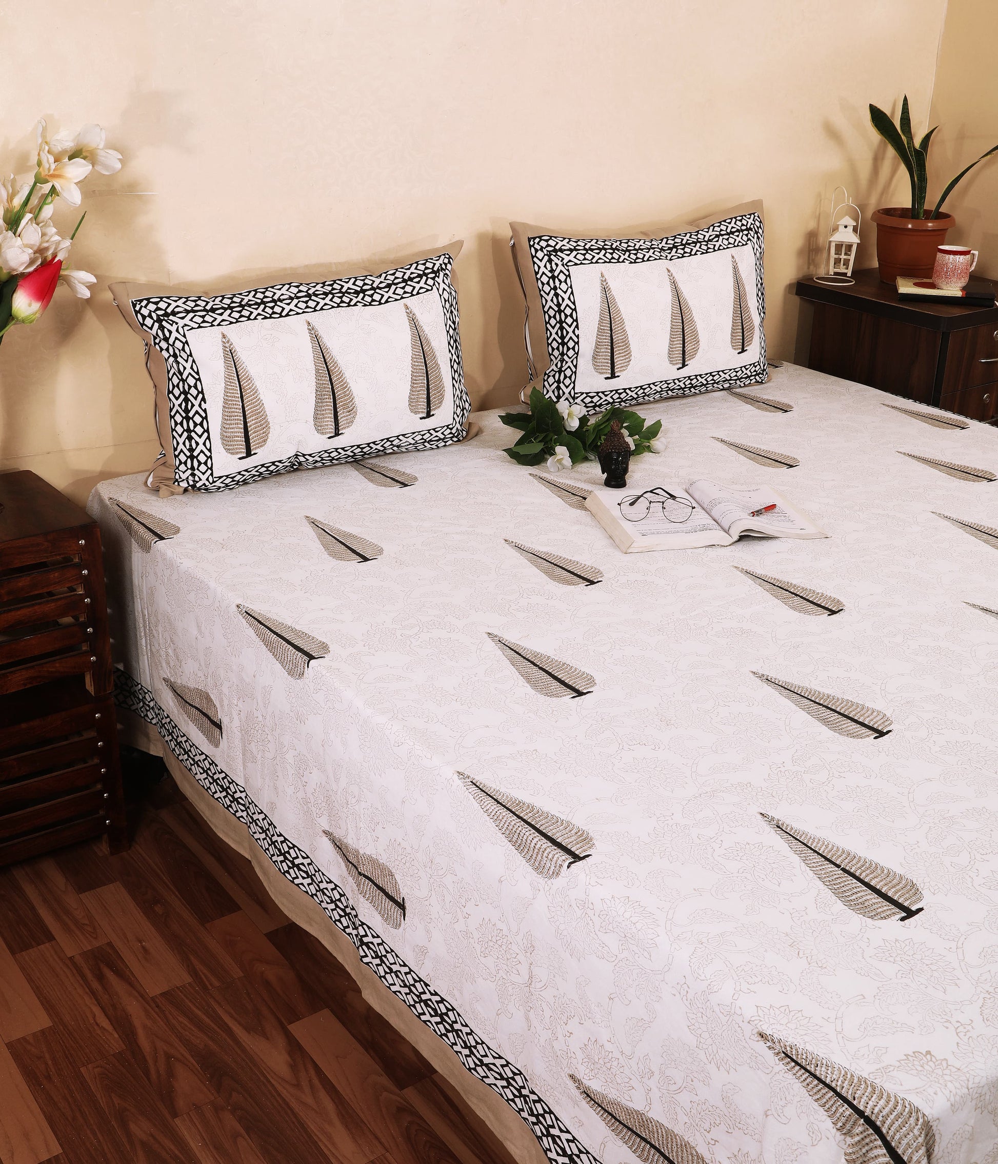 Crafted with precision in Jaipur using the authentic hand block printing technique, each impression tells a story of cultural heritage passed down through generations. Made from 100% premium cotton, this king-size bedsheet (95x108 inch) ensures luxurious softness, breathability, and year-round comfort. With export-quality finishing, it retains its strength, vibrancy, and artisanal detail even after multiple washes. The set includes two pillow covers (18x27 inch), designed to perfectly complement the bedsheet for a cohesive look.